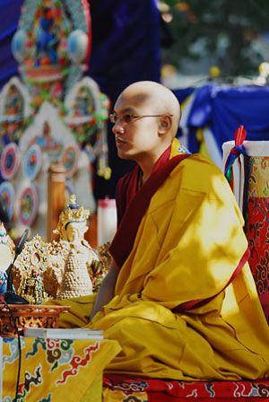 Khenpo: This happened in my life. I was in a Nyingma Monastery when I was young. One day I was shopping at the vegetable market in Sikkim and saw His Eminence Jamgon Kongtrul. I felt a deep connection and experienced his deep, deep blessing. A few months later he passed away in an accident. I became a Kagyupa due to his blessings, came to Karma Lekshey Ling, and learned that Jamgon Lama had founded the Institute. Although he has passed away, the connection continues if you have devotion, study the teachings, practice them, and make wishing-prayers. Gampopa tells us that he received two kinds of teachings, the monk's ordination and"The Precious Mala," which is the"Lam-mchog-rin-po-che'i-phreng-wa," and"The Jewel Ornament of Liberation," the"Dvags-po-thar-rgyän." He told his students,"I cannot teach you more than what is stated in these two texts. If you read and follow these teachings, it is like meeting me directly and face-to-face in real life."
