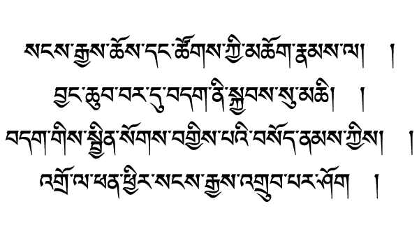 Presented at Karma Chang Chub Choephel Ling in Heidelberg in September 2008. Sincere gratitude to Lama Dorothea Nett and to Hans Billing for all that they are doing and to Bärbel Reinschmidt for having translated from Tibetan into German; translated into English and edited by Gaby Hollmann, solely responsible for all mistakes. May goodliness increase!